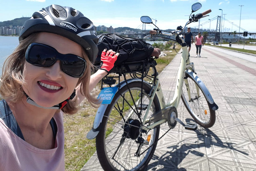 Ela indica e incentiva outras pessoas a usar a bicicleta elétrica como meio de transporte, e além do trabalho também usa sua Gioia para passear aos finais de semana e fazer pequenas tarefas do dia a dia.